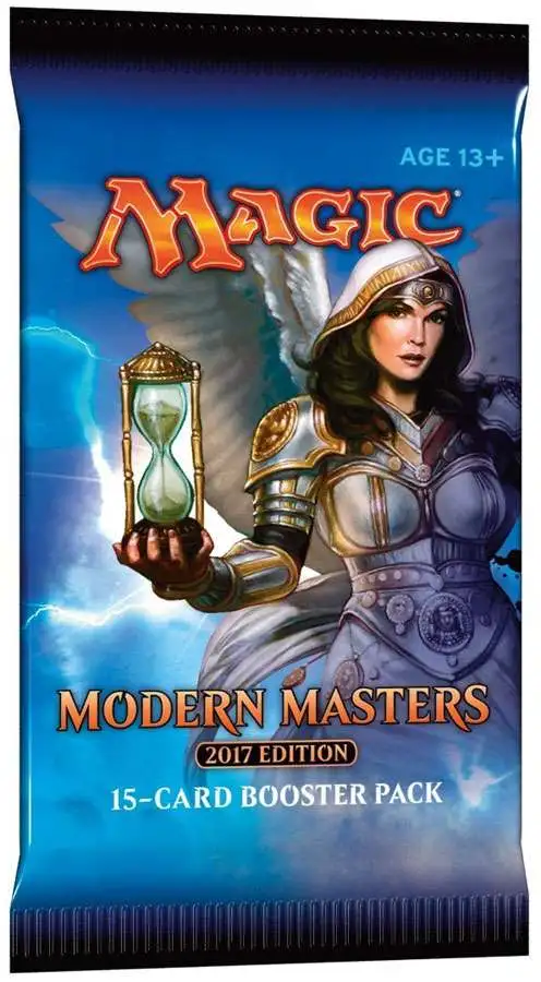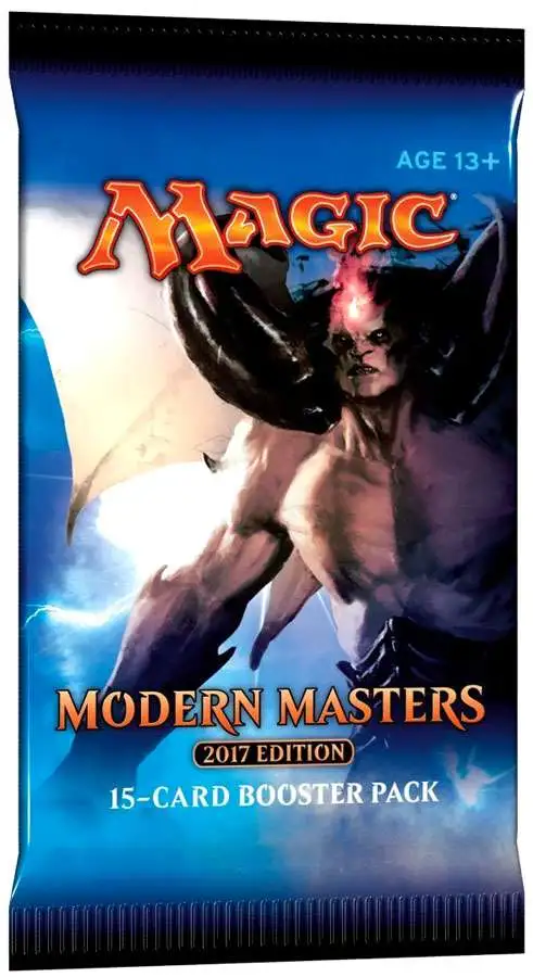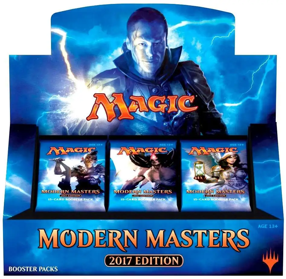 Modern Masters 2017 Edition takes players back to some of the most remarkable sets from recent history, representing everything from Eighth Edition through Magic 2014including trips through Innistrad and Return to Ravnica. Featuring new artwork on a number of cards, every card in Modern Masters 2017 Edition can be added to your favorite Modern-format decks. But first, enjoy a fresh Limited experience that combines some of Magic’s most iconic cards in new ways. Every box of Modern Masters 2017 Edition contains 24 booster packseach with fifteen randomly inserted game cards, including one premium card in every packmaking it perfect for exciting Draft play.