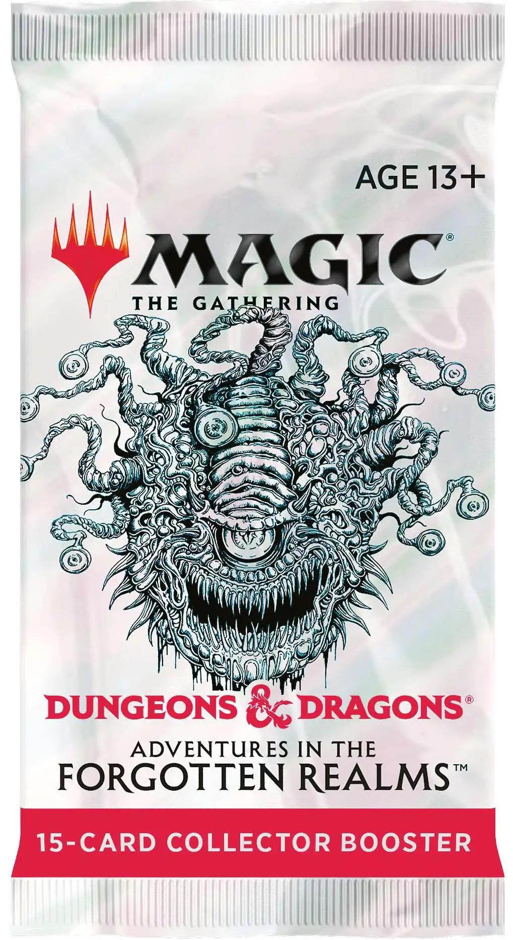 Each Adventures in the Forgotten Realms Collector Booster Pack is loaded with rares, foils, special treatements, and more. Each pack contains 15 Magic cards, and 1 foil token.