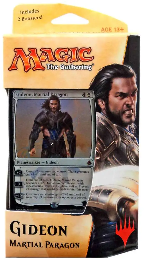Rise Among the Worthy Get started playing Magic right away! Use your courage and passion to assemble a massive army, then empower it with the strength to drive your foes into the ground. Stand alongside the Planeswalker Gideon Jura — with a card unique to this deck — to lead your allies to glory Contents Read-to-Play 60 card deck featuring a foil premium planeswalker card. 2 Amonkhet 15 Card Booster Packs Strategy insert Magic quick reference card.