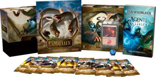 A sinister force is conspiring to unite the Shards of Alara. As the conspirise begins, reality for the 5 shards beings to overlap bringing chaos and chalamity to the worlds. Be prepared for the storm of madness that is Conflux. New cards will be found, expanding on growing list of abilities that was introduced in Shards of Alara.Comes with 8 booster packs, 2 collectable storage boxes, and a life counter.