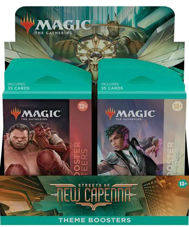 Each of the five families that vie for strength and profits in New Capenna take more than just one or two colors! This listing is for a sealed box of 10 theme booster packs, each pack has 35 cards.