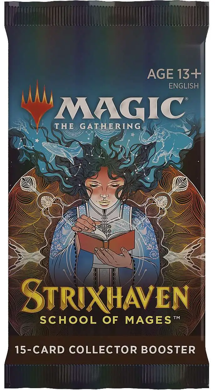 Strixhaven Collector Booster Packs are loaded with rares, foils, special treatements, and more. Each pack contains 15 Magic cards, and 1 foil token.