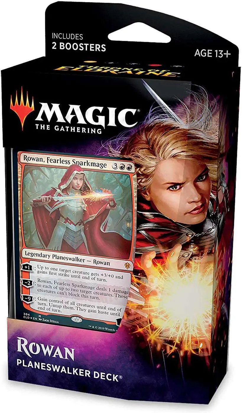 Planeswalker Decks familiarize players who are interested in Magic with basic strategy, plus the games setting, characters, and mechanics of the latest set. Each deck comes with a foil Planeswalker card not found in traditional Throne of Eldraine booster packs.